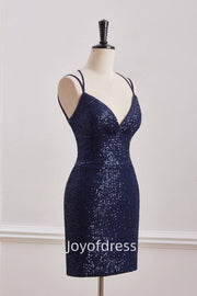 Sparkly Sequins V-Neck Sleeveless Fitted Homecoming Dress