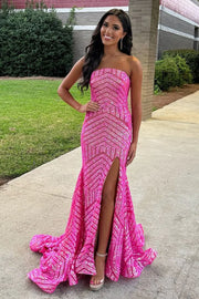 Sparkly Strapless Empire Sequins Party Prom Dress With Train