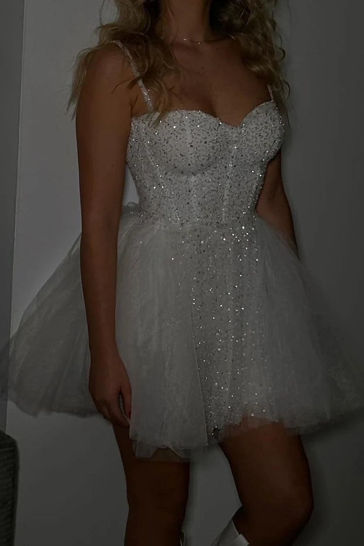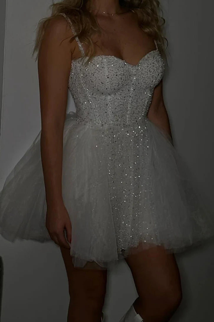 Sparkly Sweetheart Spaghetti Straps Tulle A-Line Homecoming Dress