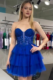 Sparkly Sweetheart Strapless A-Line Tiered Homecoming Dress
