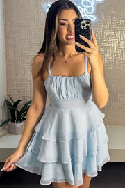 Square Sleeveless A-Line Empire Tiered Chiffon Homecoming Dress