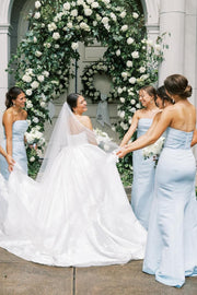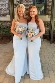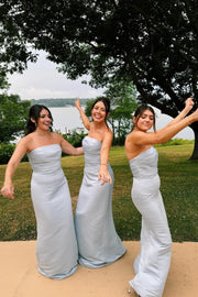 Strapless Satin Empire Bodycon Long Bridesmaid Dress