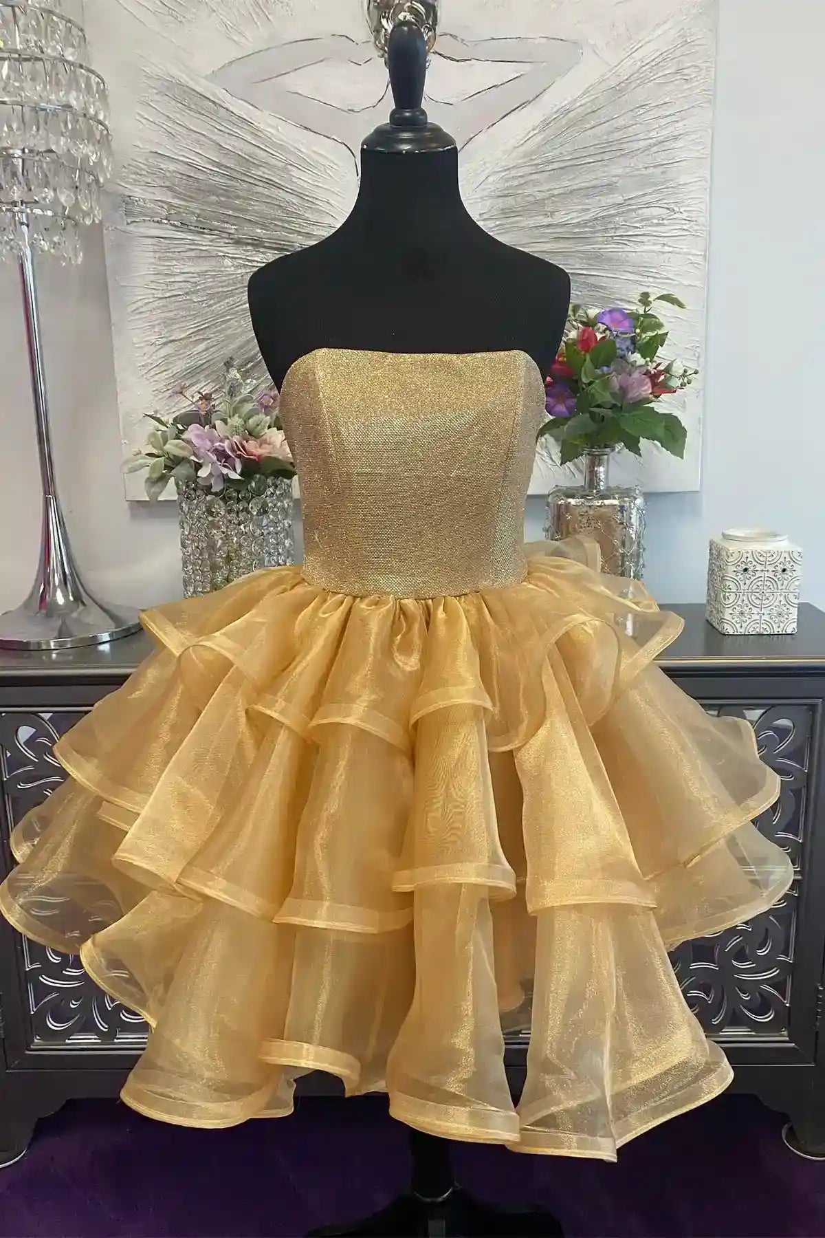 Strapless Sleeveless A-Line Empire Tiered Party Homecoming Dress