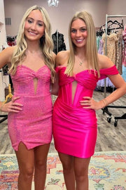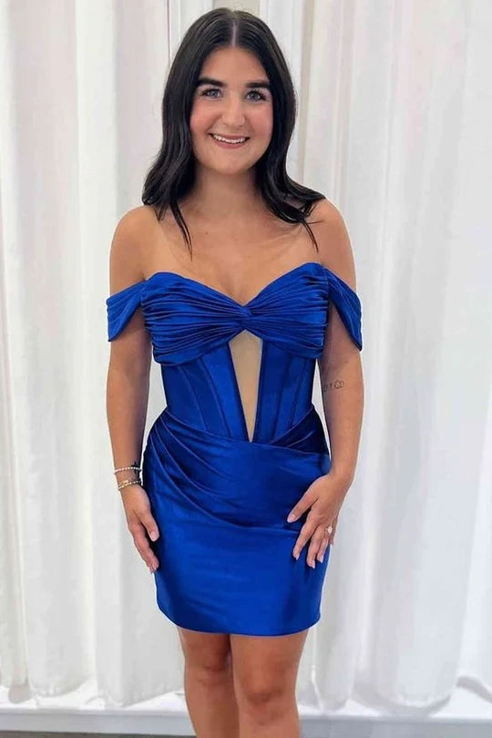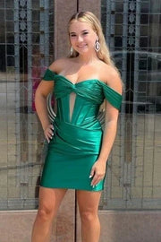 Sweetheart Off-Shoulder Empire Bodycon Satin Homecoming Dress