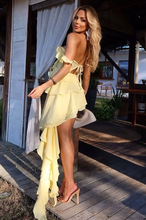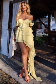 Sweetheart Off-Shoulder Tiered Chiffon A-Line Homecoming Dress