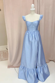 This satin bridesmaid dress features a romantic sweetheart neckline complemented by delicate ruffled straps, adding a feminine and elegant detail. Its A-line silhouette flatters a variety of body shapes, while the smooth satin fabric provides a subtle sheen for a...