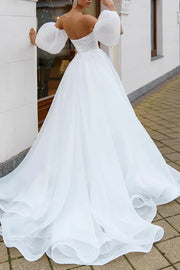 Sweetheart Short Sleeves A-Line Empire Wedding Dress With Train