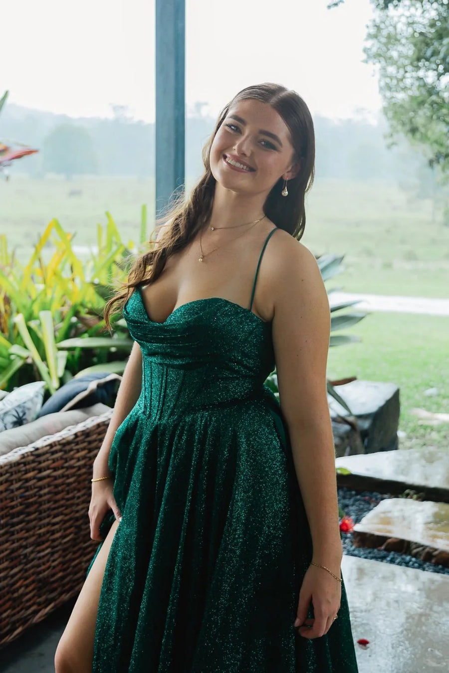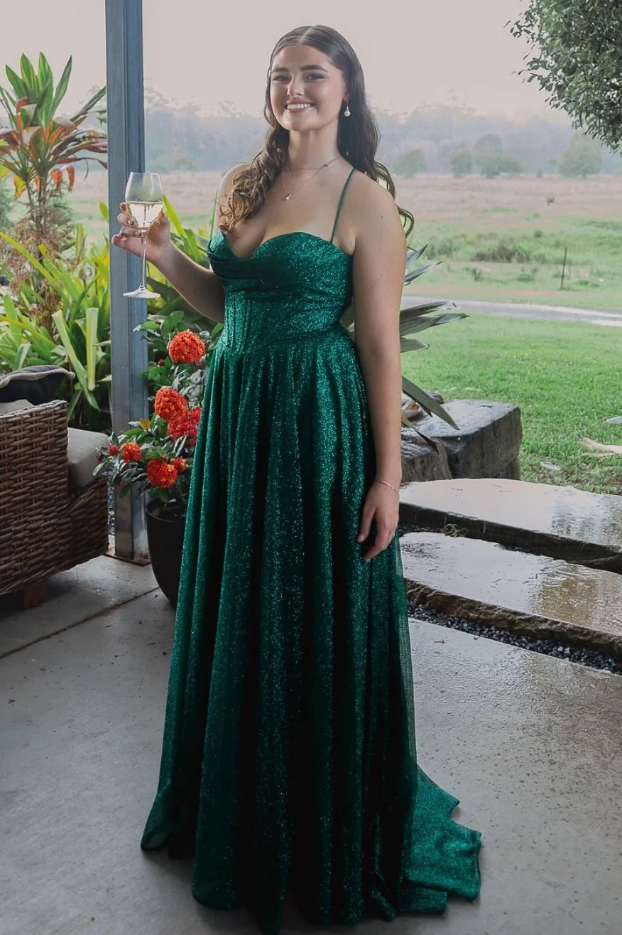 Sweetheart Spaghetti Straps Empire Sparkly Party Prom Dress