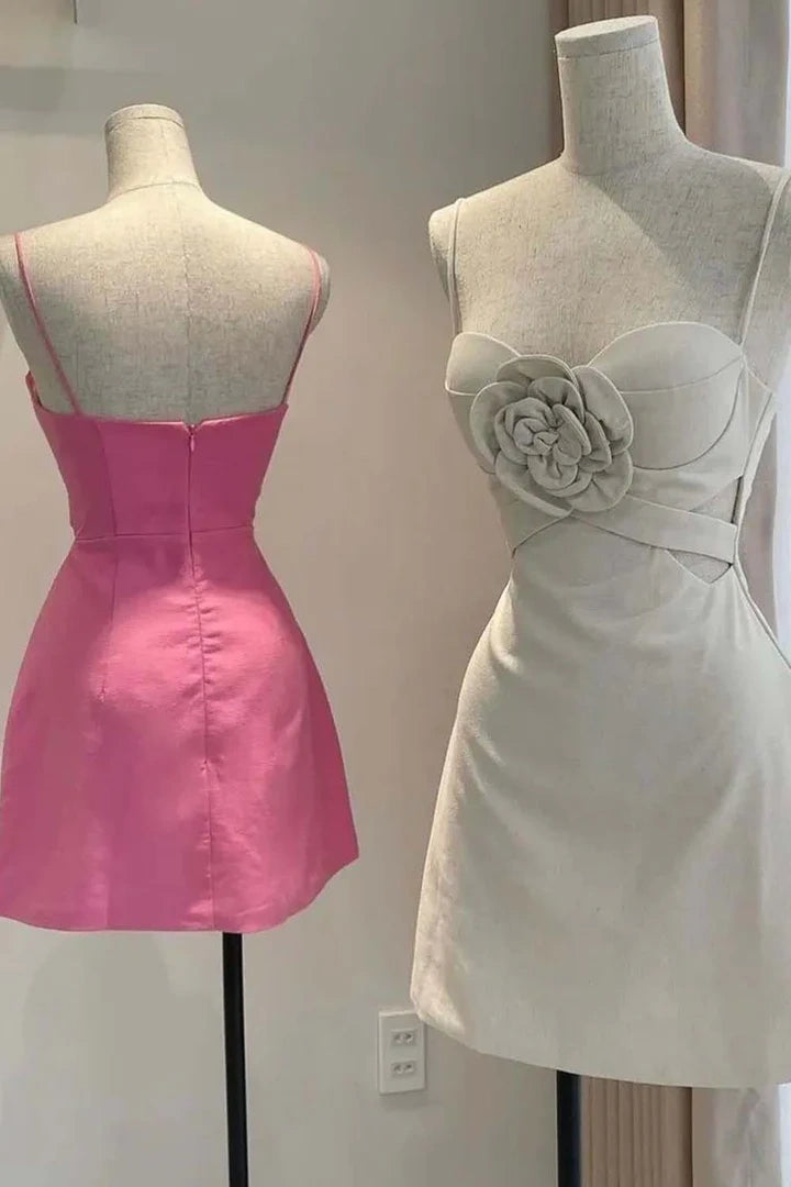 This Satin A-Line Homecoming Dress features a romantic sweetheart neckline with delicate spaghetti straps for an elegant silhouette. Floral accents add refined texture and visual interest, enhancing the dress’s feminine appeal. Crafted from smooth satin, it offers a luxurious sheen and comfortable fit. The classic A-line shape flatters various body types, making this dress a sophisticated choice for your special occasion.