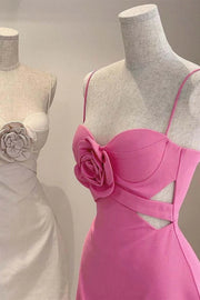 Sweetheart Spaghetti Straps Satin A-Line Floral Homecoming Dress