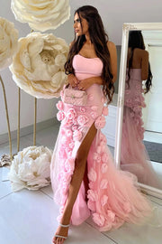 Sweetheart Strapless 3D Florals Party Prom Dress With Side Slit