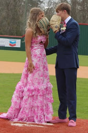 Sweetheart Strapless Chiffon A-Line Floral Party Prom Dress