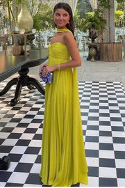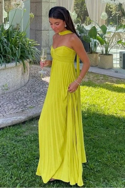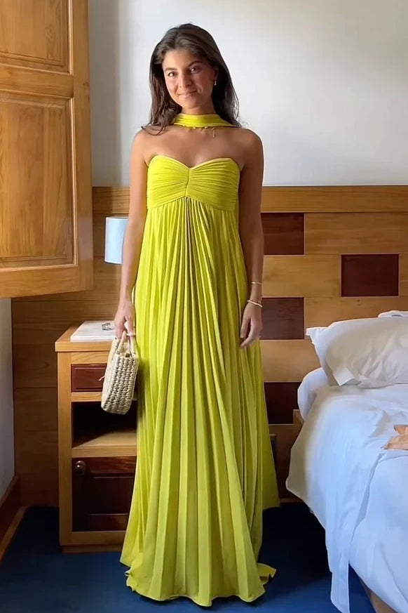 Sweetheart Strapless Pleated Long Party Prom Dress With Ribbon