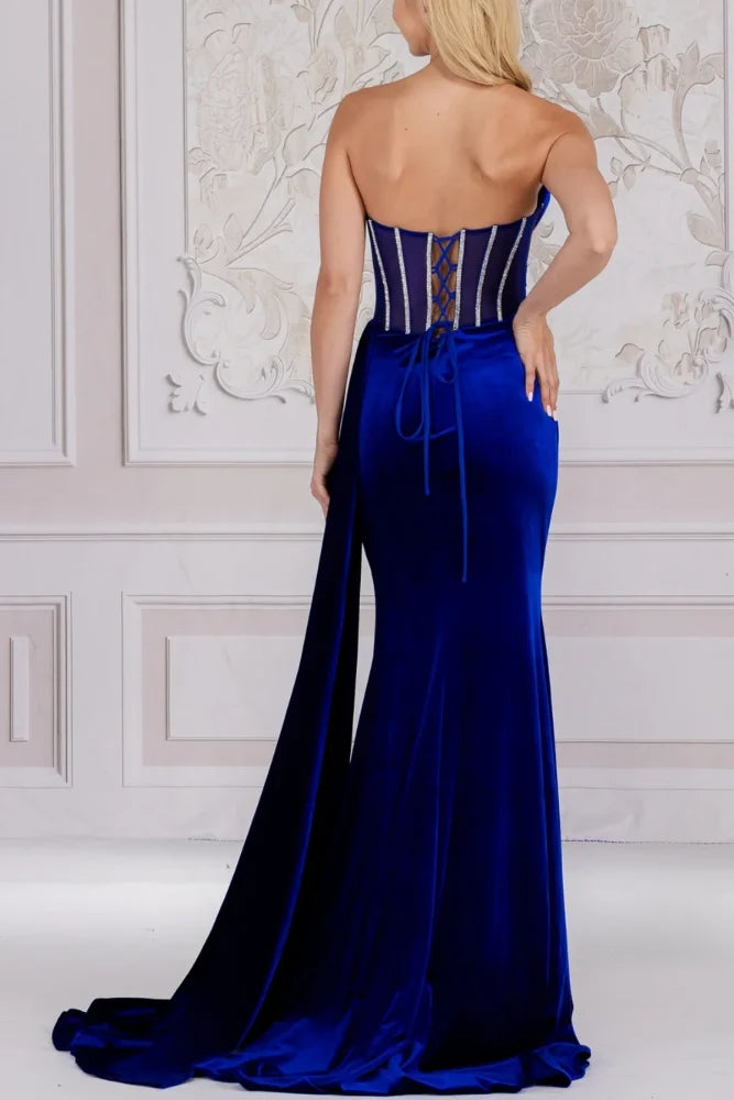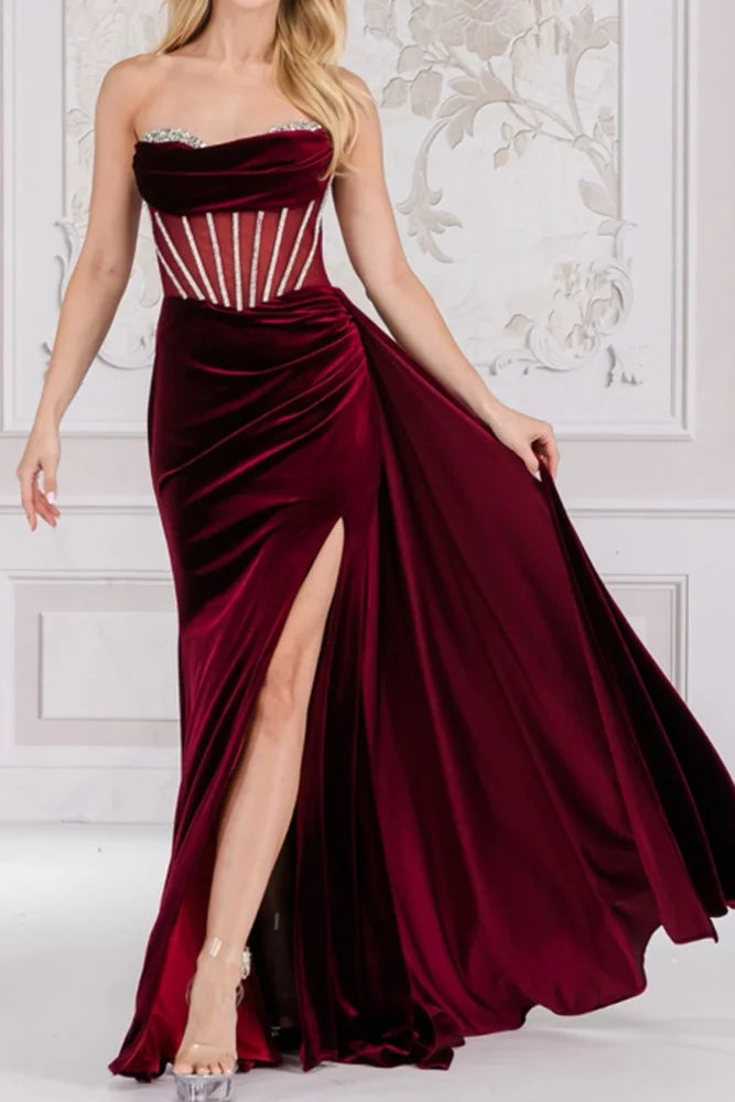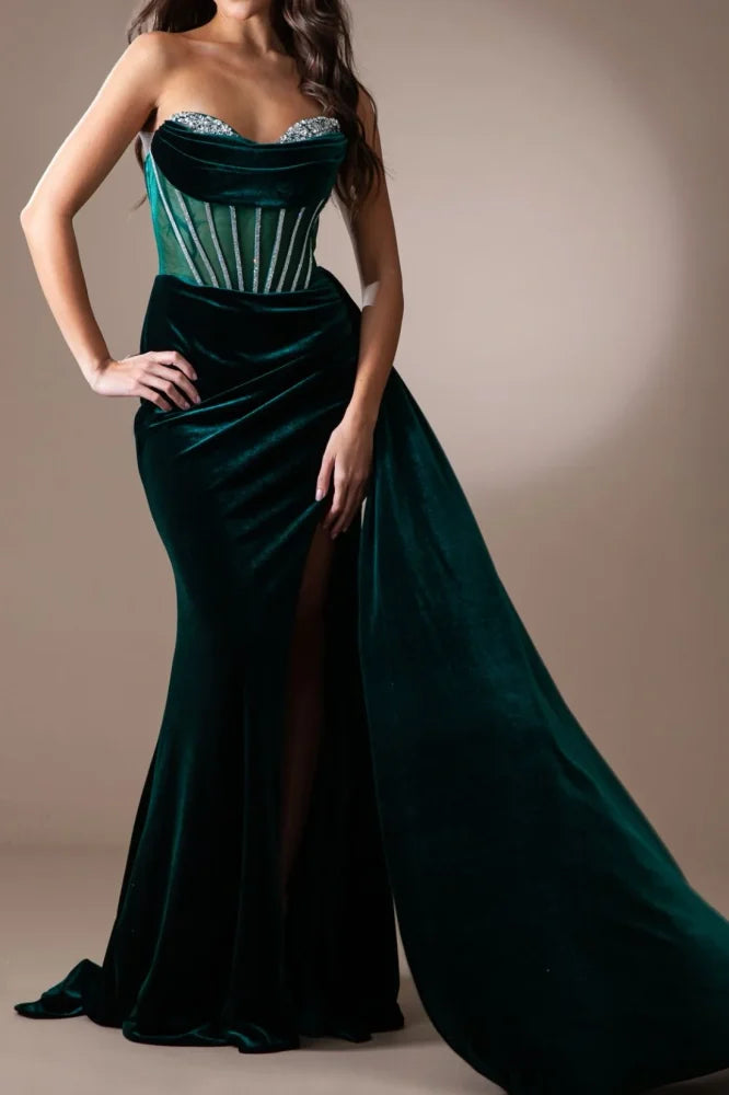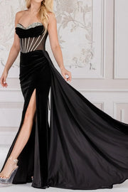 Sweetheart Strapless Sheer Empire Beaded Long Prom Dress