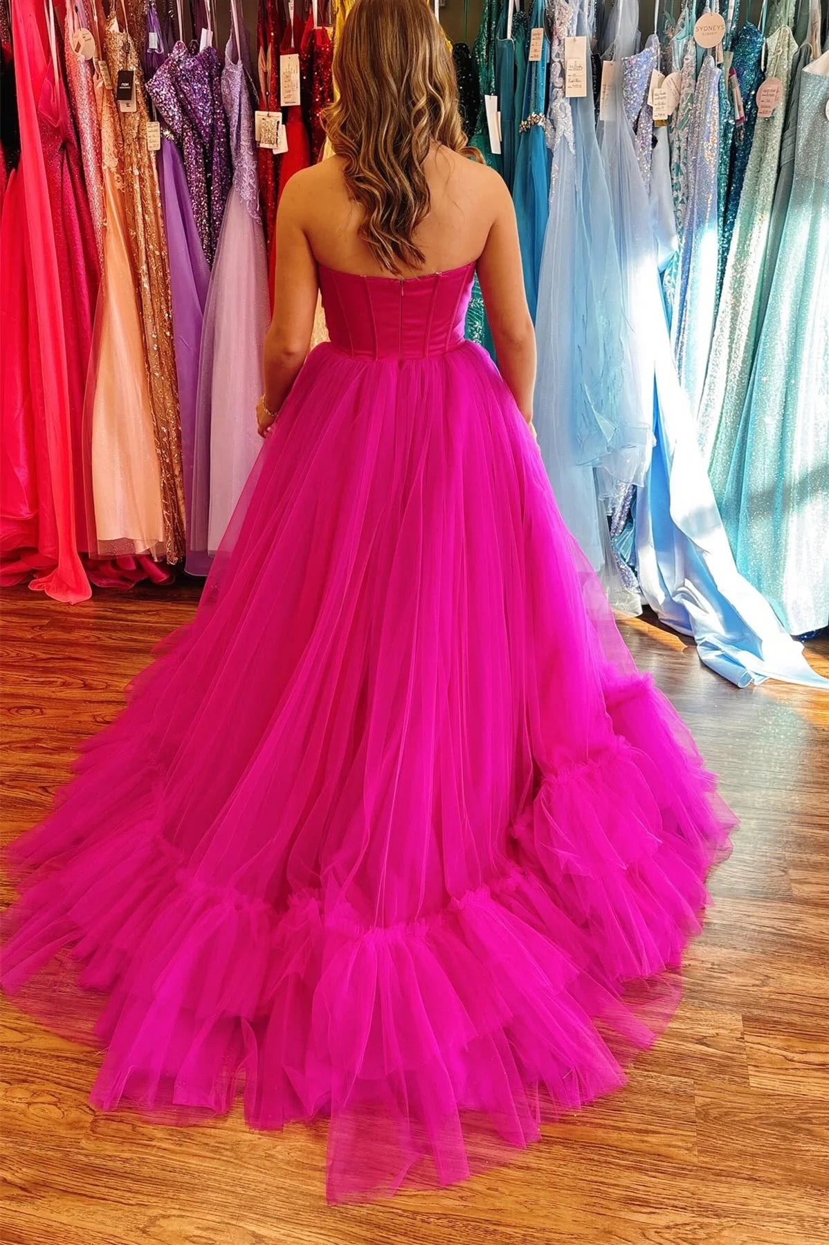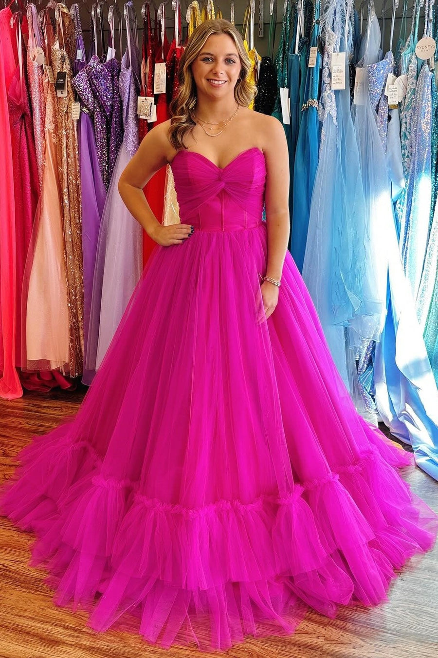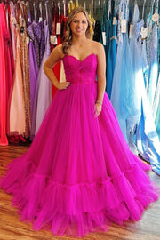 Tulle A-Line Empire Sweetheart Strapless Long Party Prom Dress