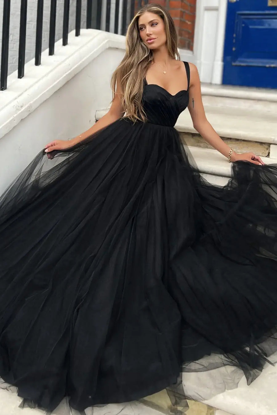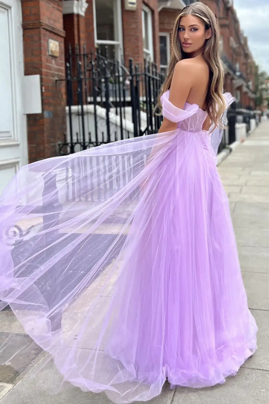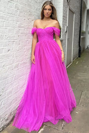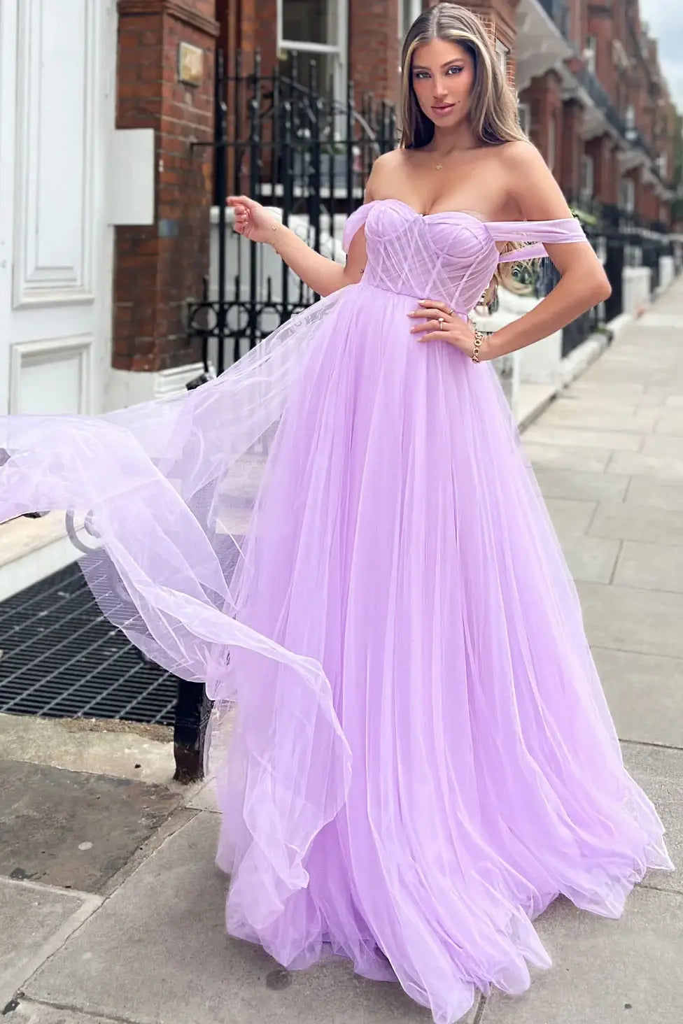 Tulle A-Line Off-Shoulder Empire Long Party Prom Dress