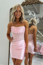 Two Tone Bodycon Strapless Pleated Empire Homecoming Dress
