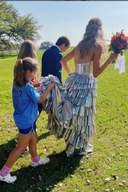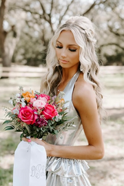 Get ready to turn heads at your next party or prom with our V-Neck Halter Empire Satin A-Line Tiered Dress. The halter style accentuates your neckline while the empire waist and A-line silhouette flatter your figure. The tiered design adds a playful touch to this elegant dress, perfect for any special occasion.