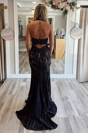 V-Neck Halter Lace Mermaid Long Party Prom Dress