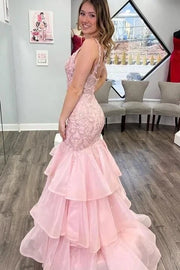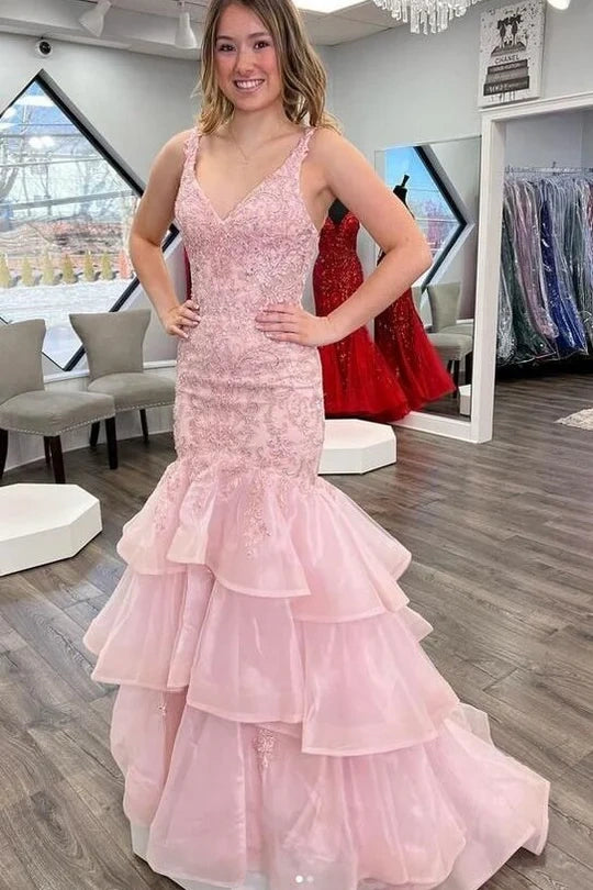 V-Neck Sleeveless Appliques Two Tone Mermaid Party Prom Dress