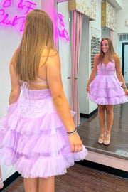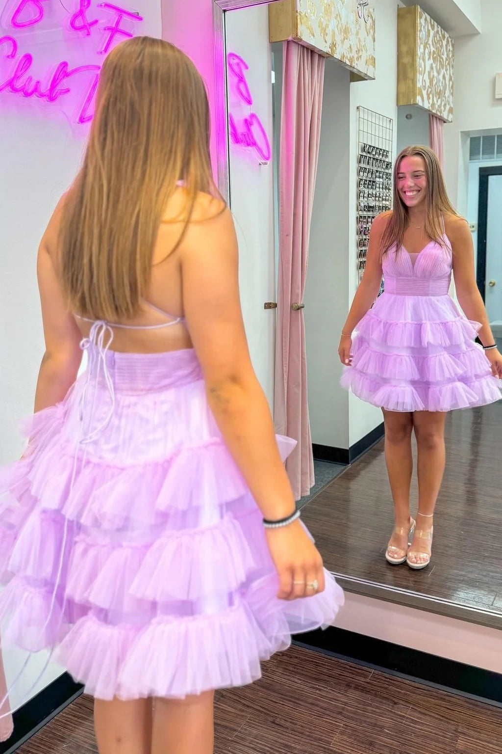V-Neck Spaghetti Straps Empire A-Line Tiered Homecoming Dress