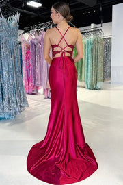 V-Neck Spaghetti Straps Lace Appliques Mermaid Party Prom Dress