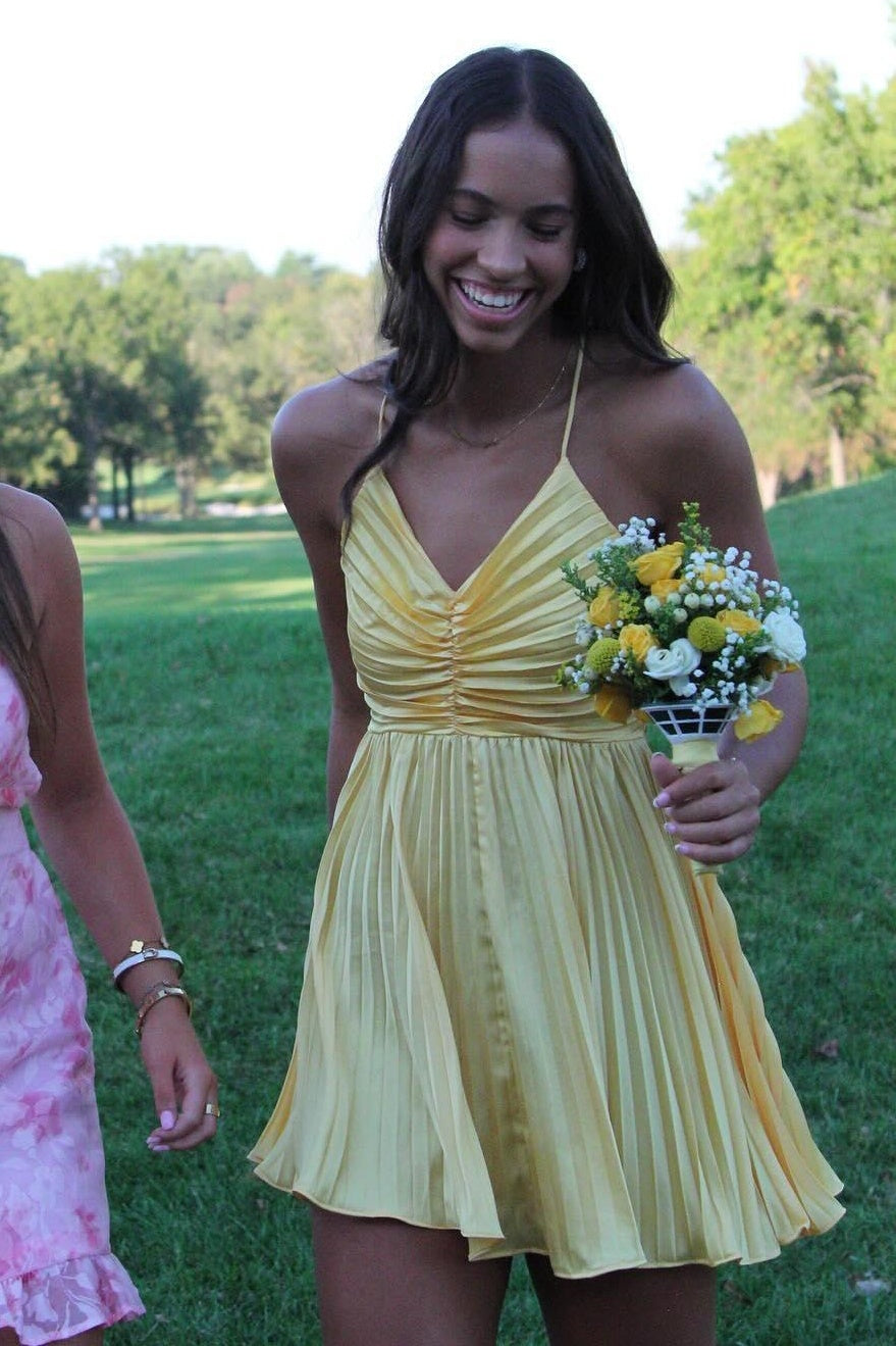 V-Neck Spaghetti Straps Pleated Short Party Homecoming Dress