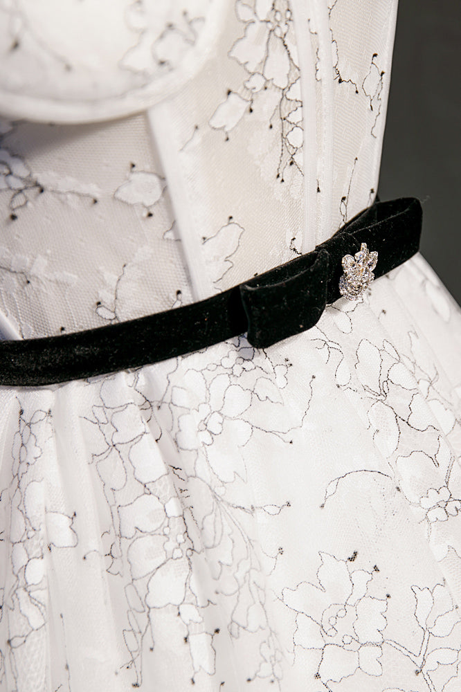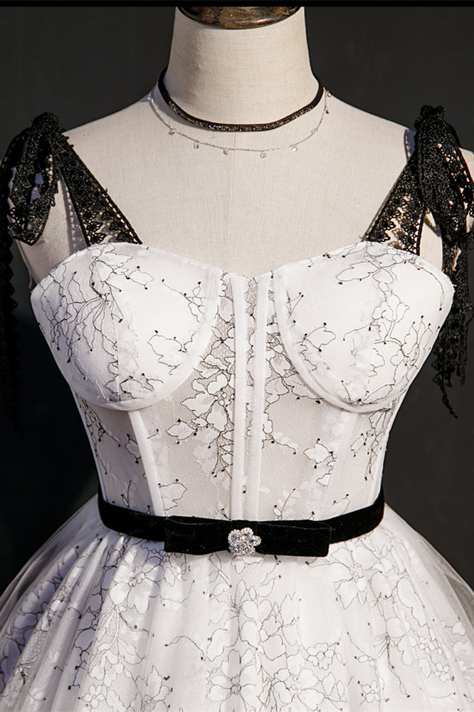 White Flower Print Bow Tie Shoulder Homecoming Dress with Sash